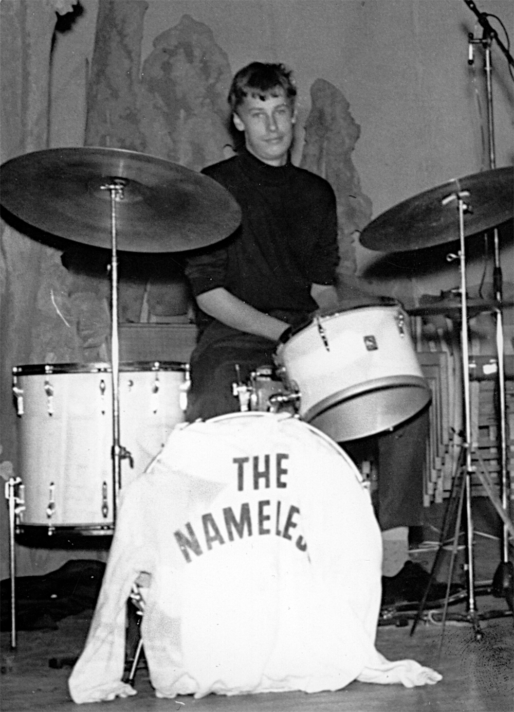 The Nameless yhtyeen ensimmäinen keikka Sasekan tehtaan tiloissa Vuosaaressa vuonna 1963. Ensin treenattiin ankarasti bändin Annankatu 5:ssä sijainneella harjoituskämpällä. Sieltä on ensimmäinen kuvista.