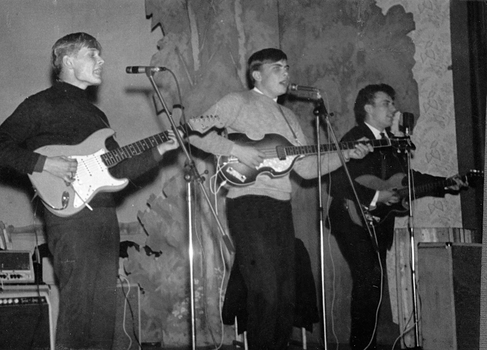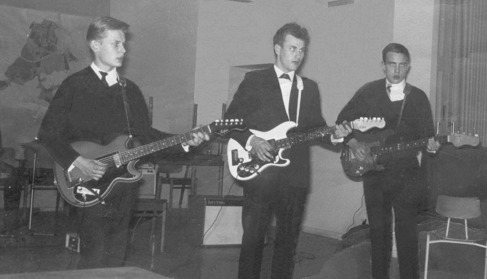 Beatles oli järisyttänyt maailmaa jo edellisenä vuonna ja Suomessakin rautalankabändien oli alettava laulamaan. Tässä Kajde, Lasse ja Curre laulavat Beatles tyyliin Twist and Shoutia.